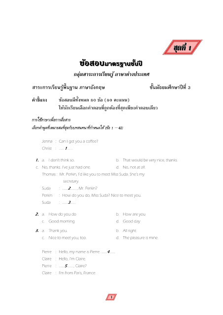 ข้อสอบมาตรฐานชั้นปี (อจท.) - ชั้นมัธยมศึกษาปีที่ 3 - วิชาภาษาอังกฤษ (ชุดที่ 1)