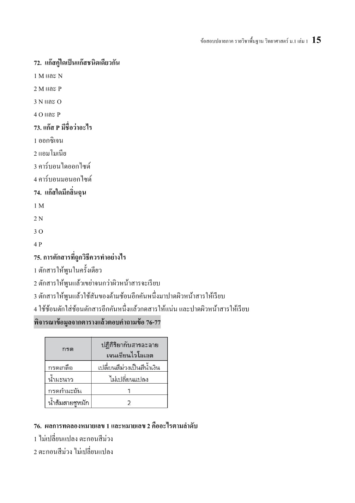 ข้อสอบวิทยาศาสตร์ - มัธยมศึกษาปีที่ 1 (ปลายภาคเรียนที่ 1) - ชุดที่ 2